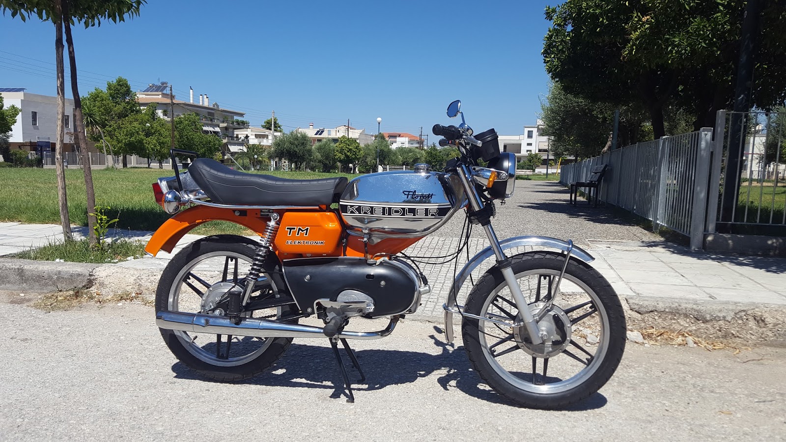 Οι νέοι της εποχής εκείνης επιθυμούσαν διακαώς και έκαναν τα αδύνατα δυνατά, ώστε να αποκτήσουν ένα από τα πιο δημοφιλή οχήματα.Ένα τέτοιο μοτοποδήλατο ήταν μεταφορικό μέσο, εργαλείο δουλείας και αντικείμενο διασκέδασης.![[IMG]](https://2.bp.blogspot.com/-TnpxHdKYRmw/WZweMuqDXaI/AAAAAAAAFWM/JqSKDvIXPVU7v9xkKavM899jH4DGbr0MgCLcBGAs/s400/kreidler-florett%2B%25283%2529.jpg)